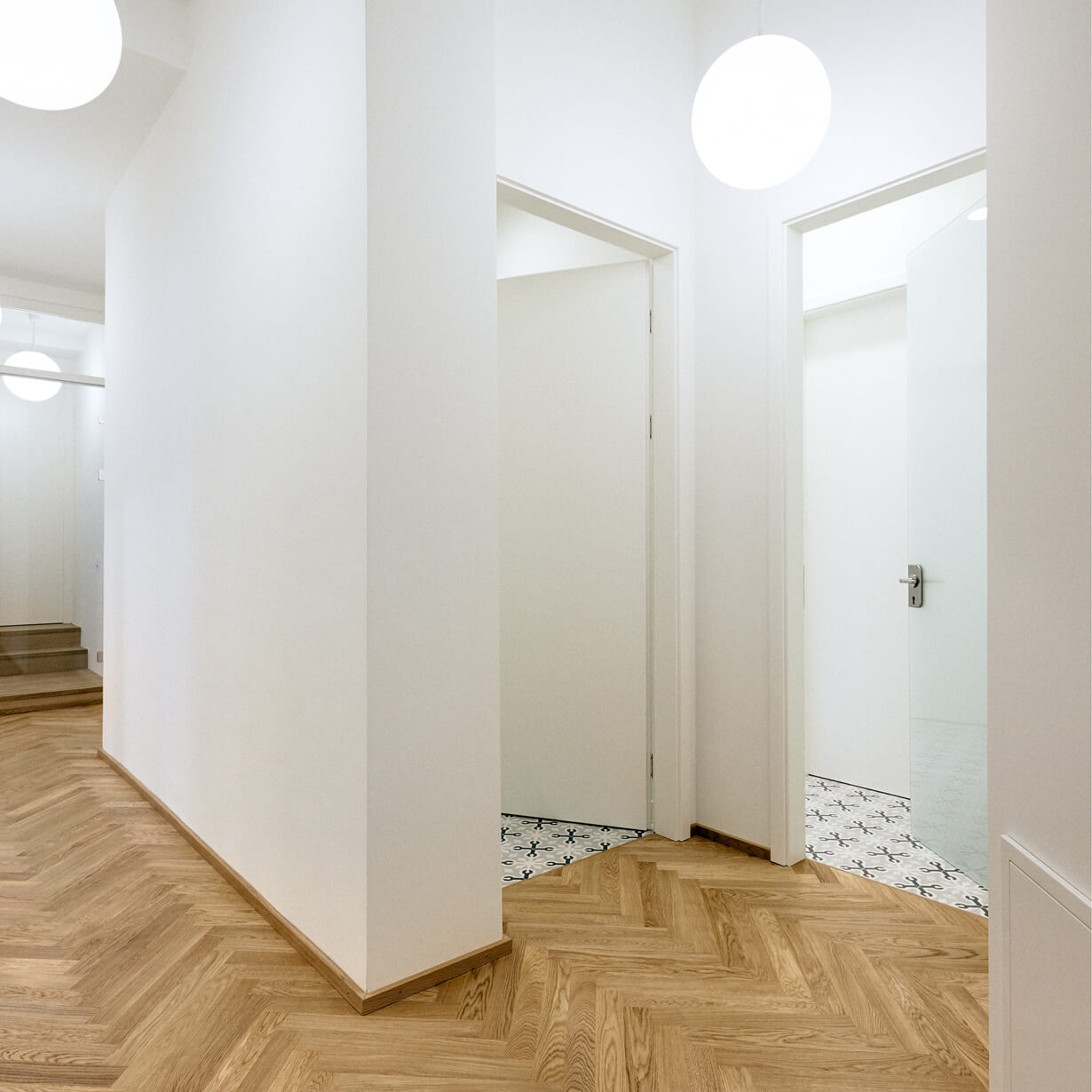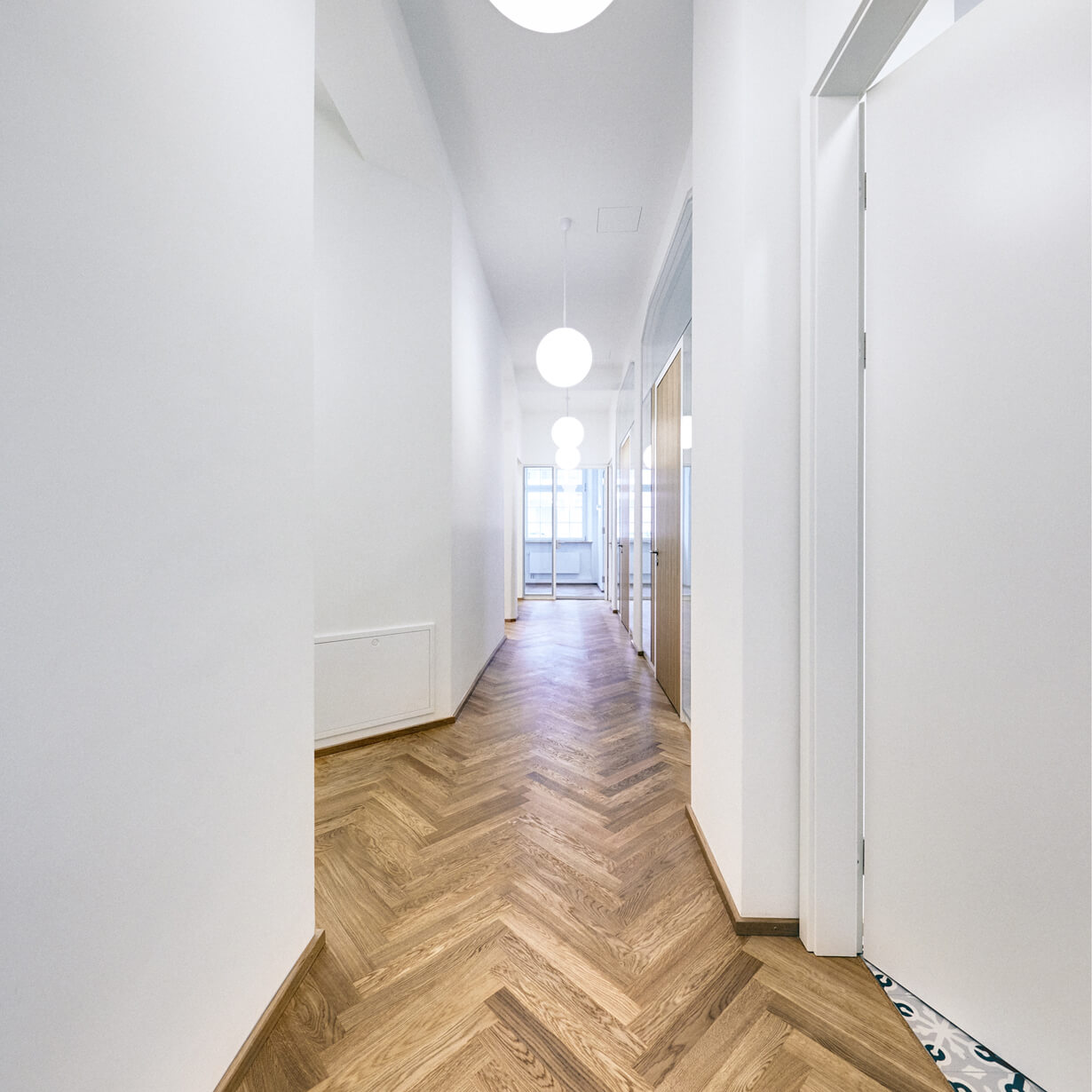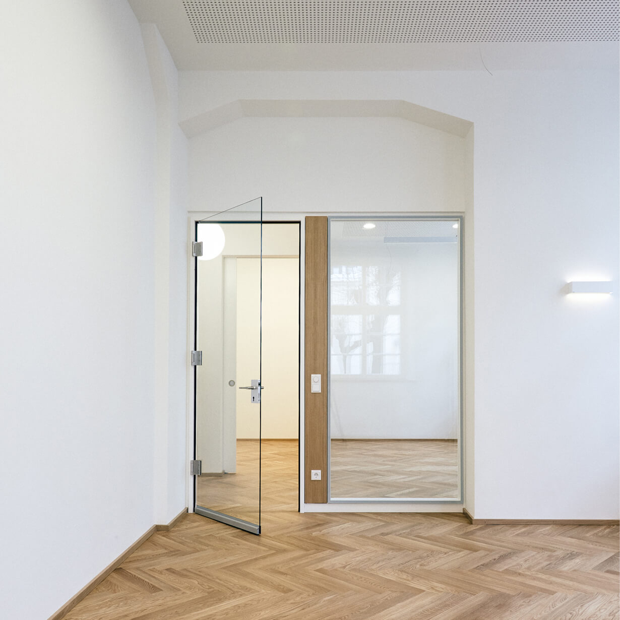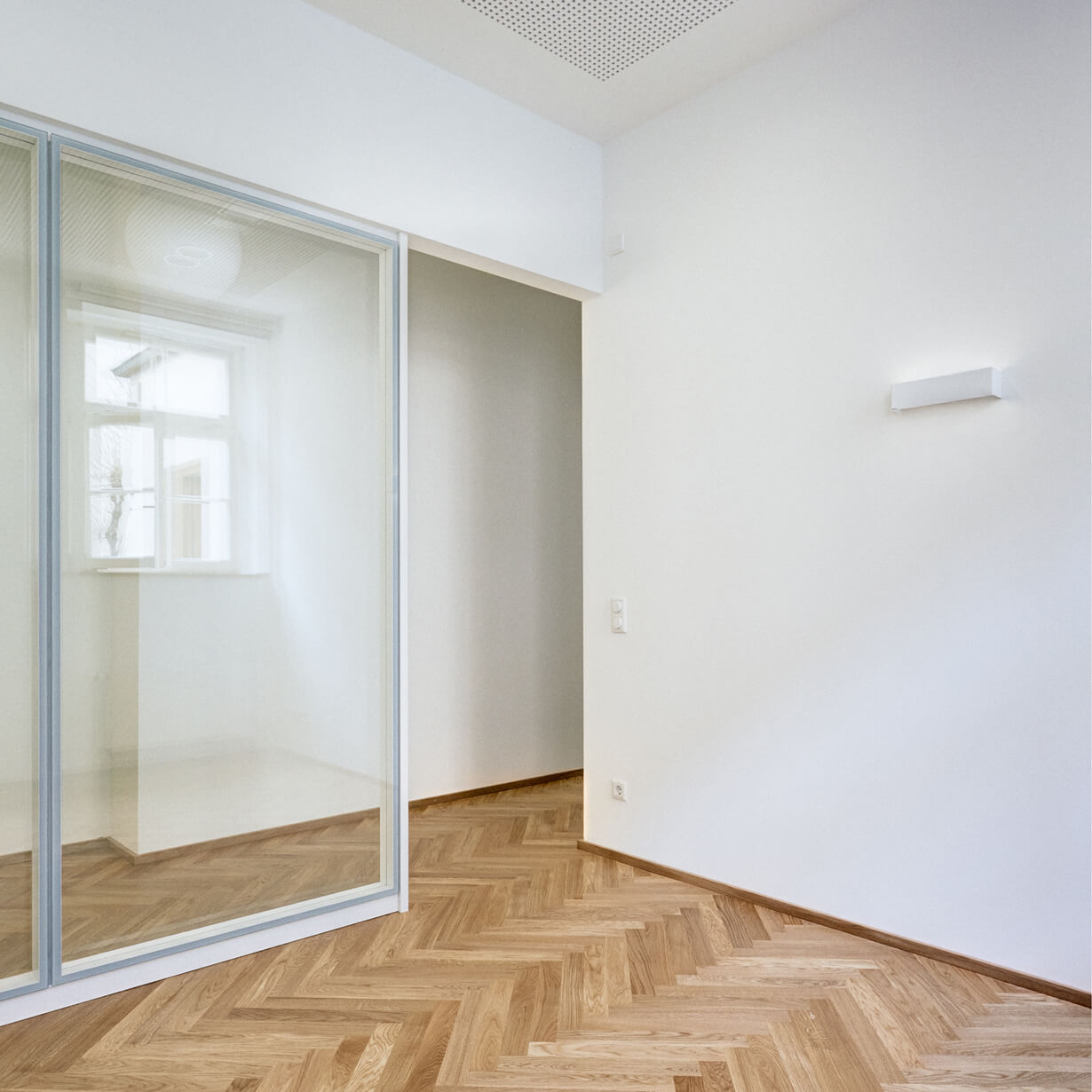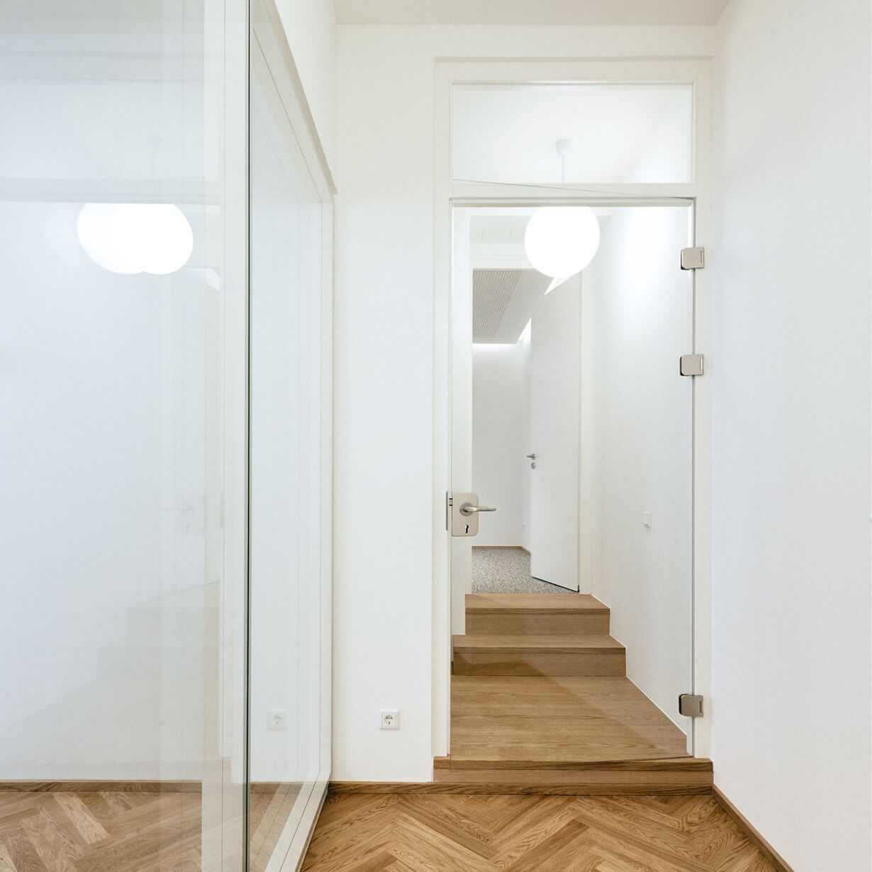 Früher waren die Büroräume eine alte Wirtschaft. Solide eingeraucht und seit Jahrzenten patiniert durch all die Tabakschwaden und die schwitzenden Gäste. Dann beschloss der Eigentümer eine Umnutzung für die eigene Verwaltung und damit einhergehend eine Kernsanierung mit allen Auflagen, die so ein ehrwürdiges Gebäude von 1910 so mit sich bringt. Eingelöst wurden neue Fenster nach Denkmalschutzvorgaben, Brandschutzauflagen für die Kellerdecken und statische Ertüchtigungen, die die Rostschäden an den Stahlträgern kompensierten. Bauen im Bestand bringt Überraschungen: angenehme, wie eine weit spannende Tragstruktur und freistehende Stützen, die das Haus tragen. Aber auch unangenehme, wie Schadstoff belastete Böden, die entsorgt werden müssen. Das Ergebnis der Umnutzung sind völlig neue Raumstrukturen, helle, lichtdurchflutete Büroräume, ausgestattet mit Fischgrätparkett aus Eiche, Haustechnik auf neuem Stand und moderne Glastrennwände, die die Vorstandsräume akustisch diskret trennen, aber doch Transparenz zulassen. Respektiert wurden die abgeschrägten Ecken der Unterzüge, damit die alte Struktur ablesbar bleibt. Und überlebt hat die alte Kellertreppe, die noch die Geschichte erzählt, wie damals die Bierfahrer die Bierfässer in den Keller schleppten. Heute schwitzt hier niemand mehr, auch nicht im Sommer und von außen sieht man dem Gebäude auch die schlimmen 70er Jahre nicht mehr an. Zum Glück gibt es noch Handwerker, die historische Putze beherrschen!