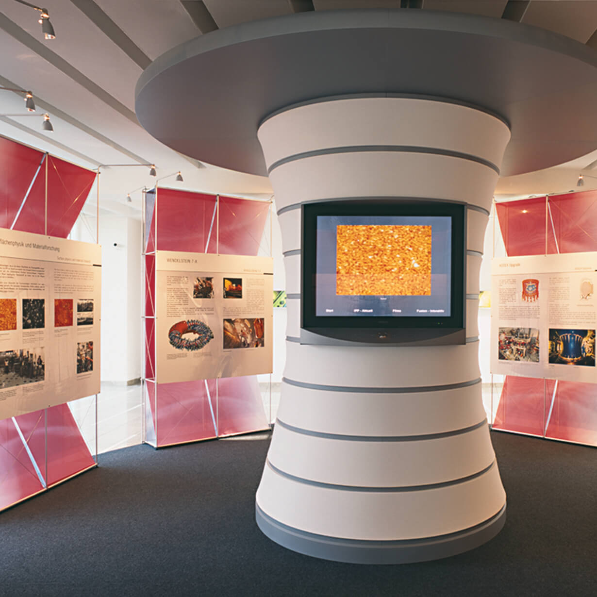 Plasmaphysik – Kernfusion – unsichtbare Welten sichtbar machen: Die Dauerausstellung symbolisiert das Innere eines Fusionsreaktors. An dessen gewölbten Wänden wird Einblick in die faszinierende Welt der Plasma-Forschung gewährt. Frei schwebende Infotafeln, ein Infoscreen und Leuchtgrafiken schlüsseln die hochkomplexe Arbeitsweise des Instituts verständlich auf. In der angrenzenden Schausammlung wird mit zahlreichen Originalexponaten die Arbeit aus mehr als 50 Jahren Fusionsforschung dokumentiert.