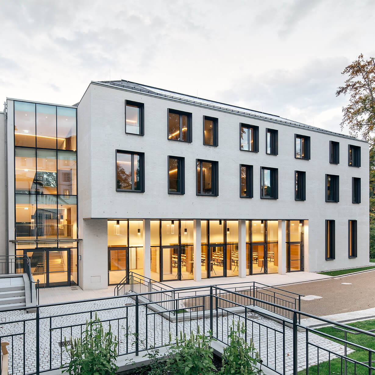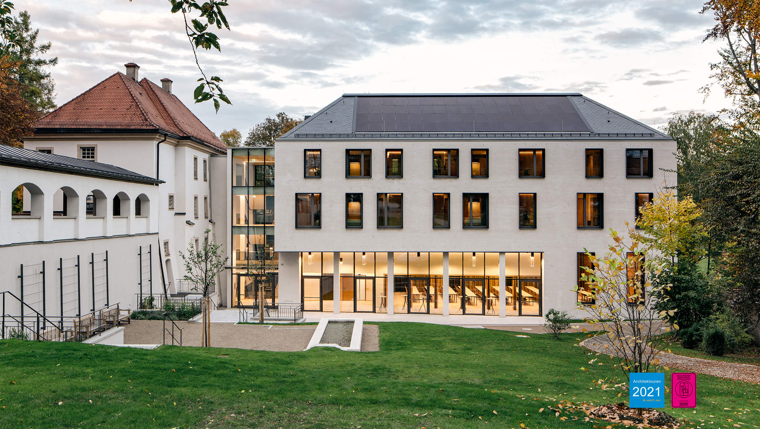 Der Neubau der Küferei für das Schwäbische Bildungszentrum Irsee zeigt das ideale Zusammenspiel von Architektur – der Blick von außen nach innen – und Innenarchitektur – der Blick von innen nach außen.