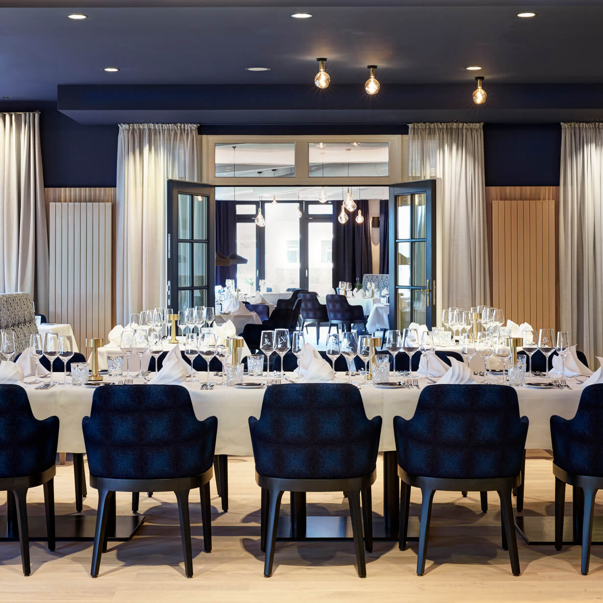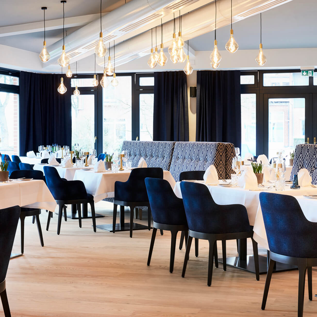 Was die Bürgerhäuser der Vergangenheit sehr gut konnten, nämlich dem Sinn für Schönes Raum geben, kann das neue “Lemsahler“auch. Hier werden feine Speisen kredenzt und diesem Genuss steht der optische Genuss in nichts nach.